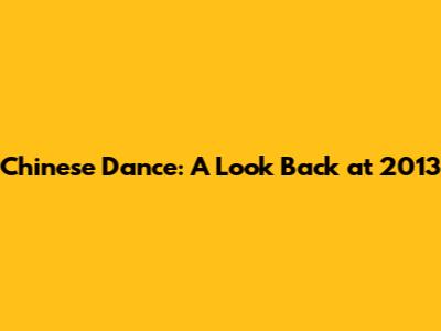 Chinese Dance: A Look Back At 2013