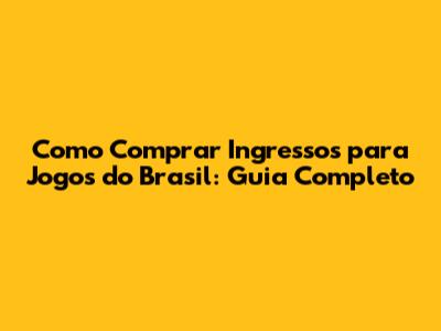 Como Comprar Ingressos Para Jogos Do Brasil: Guia Completo
