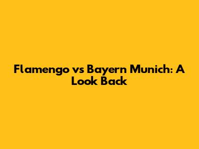 Flamengo Vs Bayern Munich: A Look Back
