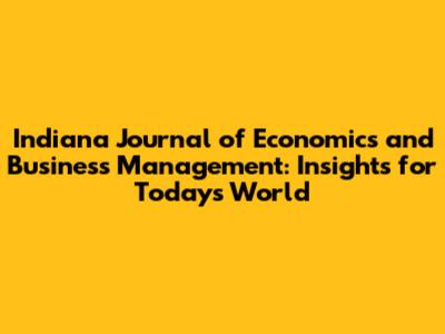 Indiana Journal Of Economics And Business Management: Insights