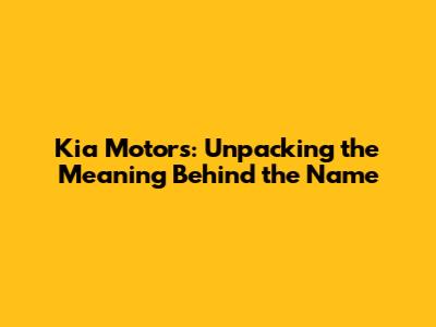 Kia Motors: Unpacking The Meaning Behind The Name