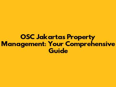 OSC Jakarta's Property Management: Your Guide
