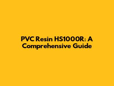 PVC Resin HS1000R: Properties, Uses, And Advantages