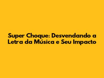 Super Choque: Desvendando A Letra Da Música E Seu Impacto