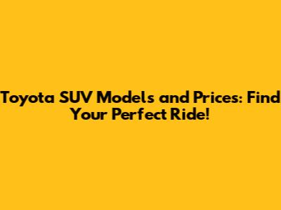 Toyota SUV Models & Prices: Find Your Perfect Ride!