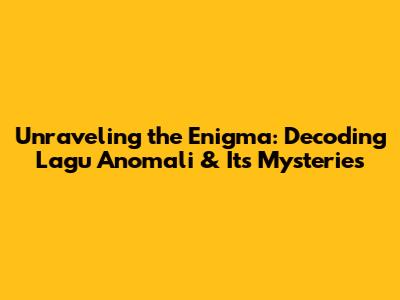Unraveling The Enigma: Decoding 'Lagu Anomali' & Its Mysteries